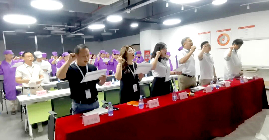 In the solemn atmosphere, the team leaders neatly lined up, clenched their right fists and swore loudly, the powerful oath echoed in the venue, showing the team leaders' firm determination and faith.